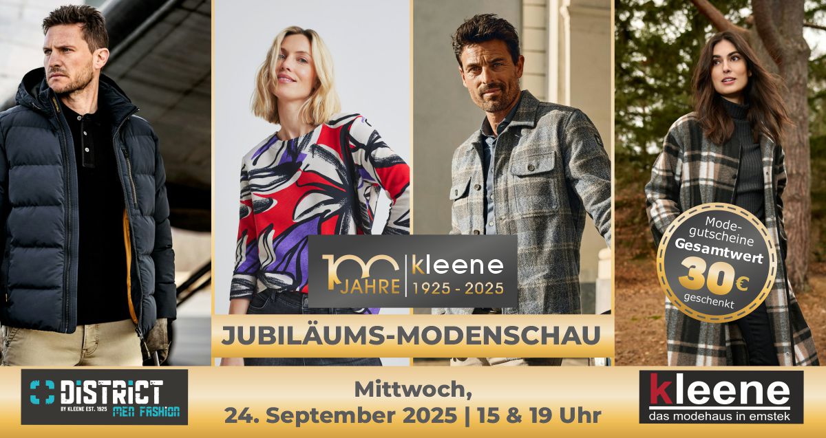 Dieses Jahr ist ein ganz besonderes für uns: Modehaus Kleene feiert 100-jähriges Bestehen! Seit einem Jahrhundert stehen wir für Mode, Qualität und persönliche Beratung – und das möchten wir mit euch feiern!