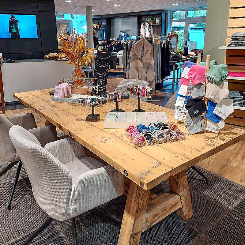 Auf 400 qm bieten wir Ihnen die besten Basics, kultige Klassiker, angesagte Trends und eine große Markenauswahl die keine Wünsche offen lassen. Von modischen Saison-Highlights bis hin zu kompletten Outfit-Ideen: Bei uns finden qualitäts- und modebewusste Frauen alles, was das Fashion-Herz begehrt.